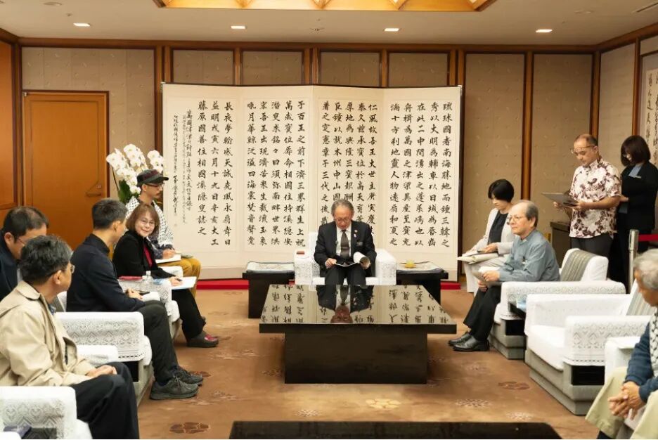 On the morning of the 15th, Okinawa Governor Denny Tamaki met with the delegation at the prefectural government office, including Global South Academic Forum Secretary-General Xiong Jie, Director of the International Department of Taiwan's Labor Party Zang Ruxing, Tricontinental: Institute for Social Research Asia coordinators Tings Chak and Atul Chandra. Veteran Okinawan peace movement activists Aragaki Kunio, Gushiken Takamatsu, Yonaha Keiko, and Sakoda Hidefumi also participated in the meeting. Governor Tamaki first expressed his gratitude and welcome to the delegation, saying he hoped to learn about the full content of their study tour and listen to voices from China and the Global South. He also expressed his desire to maintain continuous dialogue, foster good neighborly relations, and promote peace together, ensuring that the tragedy of the Battle of Okinawa never happens again.